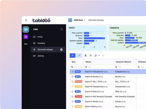 Running a business can be simple—with the right tool. Tabidoo is no-code, like a set of building blocks. Build your own CRM, ATS or project management app in just minutes, tailored to your needs. Then adapt it anytime, anywhere, however you want. What you create today, you can grow tomorrow.